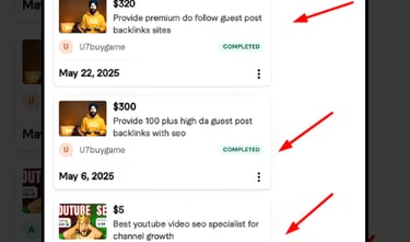 🎯 I’m proud to share that I recently completed over $1,000 worth of guest post backlink orders on Fiverr for an international client, delivering top-quality SEO results within just one month. The project included multiple high-authority guest post campaigns focused on building strong, do-follow backlinks that improved keyword visibility and long-term ranking performance. Working with global clients like this reinforces my commitment to providing transparent, impactful, and data-driven SEO solutions that drive real growth.