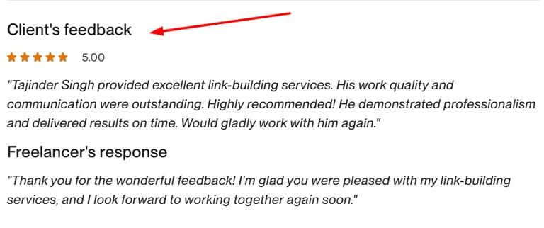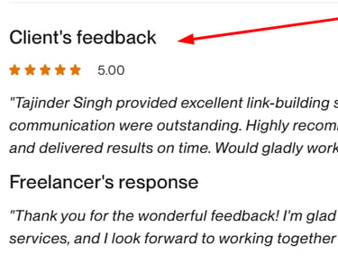 I am grateful to have received 5-star ratings and positive feedback from my clients on platforms like Fiverr and Upwork. Their appreciation reflects my commitment to delivering high-quality SEO services, effective backlink strategies, and measurable results. I strive to maintain this level of excellence in every project I undertake.